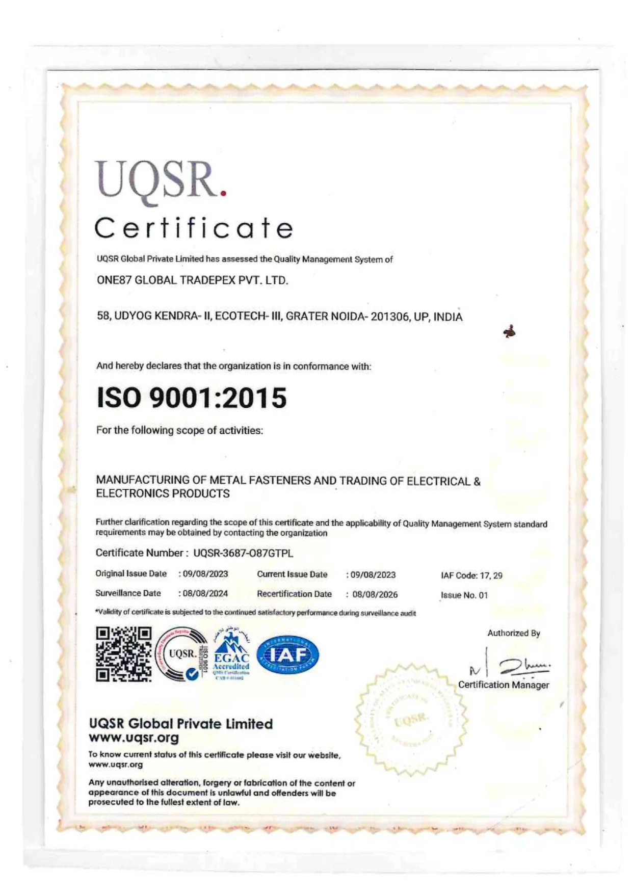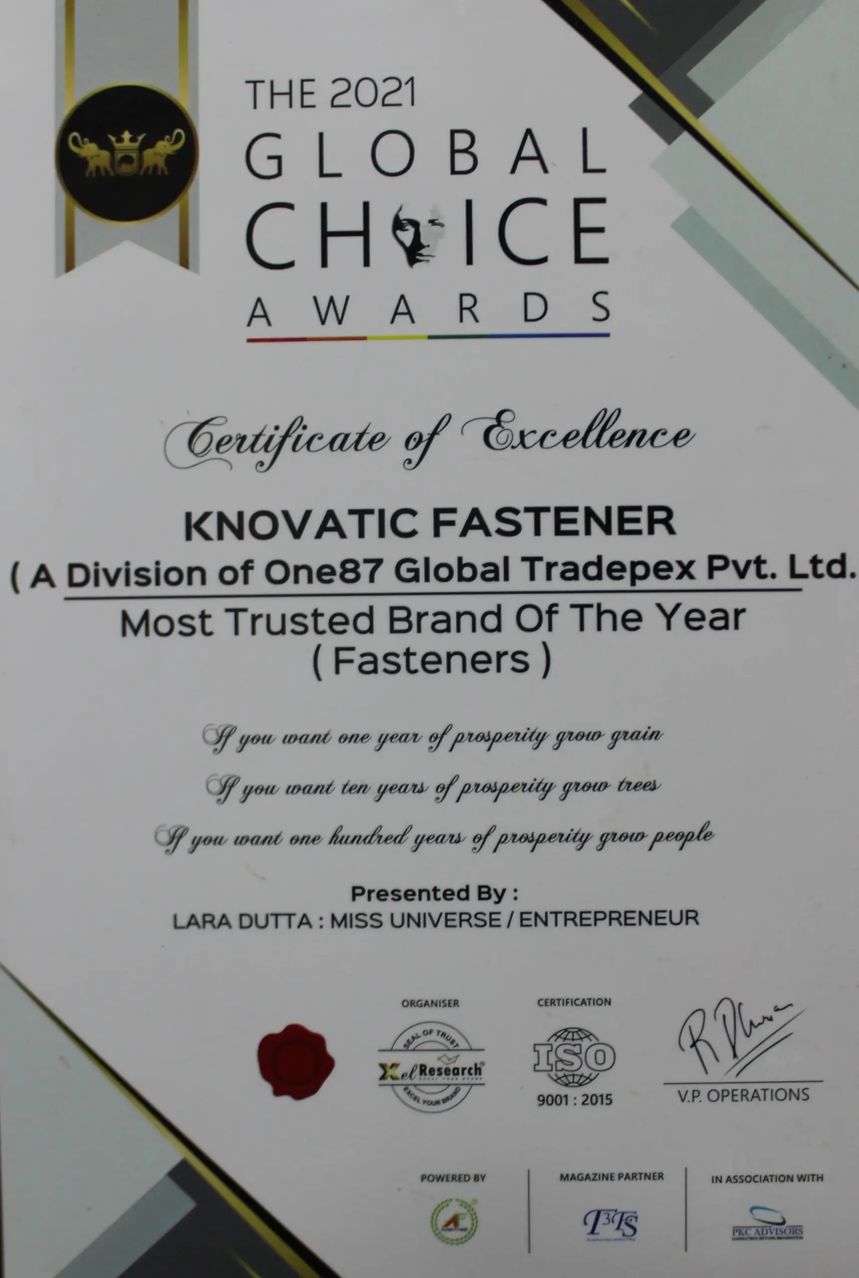 Knovatic Fasteners is proud to be certified by globally recognized standards.